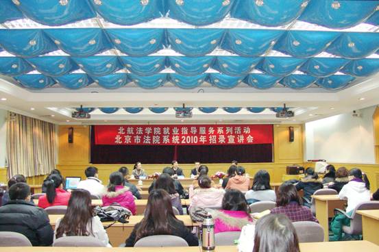 据悉,去年我院有10名毕业生进入北京市法院系统,占到就业总人数的五分之一。2010年将是北京市法院系统大规模扩招的最后一年,招录人数为740人,其中250人是面向全国高校招考,490人面向北京地区高校招考。本次活动是北京市法院系统首次进入我院的招录宣讲,标志着我院在启动快速发展战略后,人才培养已取得初步成效。