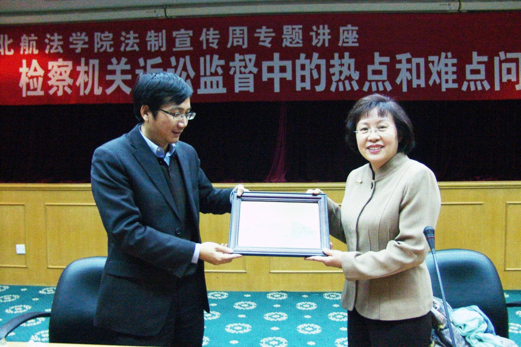 2009年12月9日,北京市检察院副检察长甄贞应北航永利集团88304官网邀请做客“北航法制宣传周”,为永利集团88304官网师生作题为 “检察机关诉讼监督中的热点和难点问题及对策”的专题讲座。永利集团88304官网院长龙卫球主持讲座。