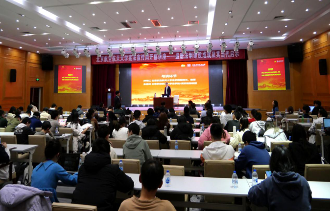 11月29日,北京航空航天大学2023年宪法宣传周开幕式暨法治文化主题讲座在如心会议中心成功举办。本次宪法宣传周以“大力弘扬宪法精神,建设社会主义法治文化”为主题,特邀中国人民大学历史学院刘后滨教授作开幕讲座。校党委常委、宣传部部长李建伟、永利集团88304官网党委书记周友军、副院长泮伟江、党委副书记邹沛东、人文与社会科学高等研究院副教授余盛峰出席,来自北航各学科的一百五十余名本研学生共同参加。开幕讲座由周友军主持。